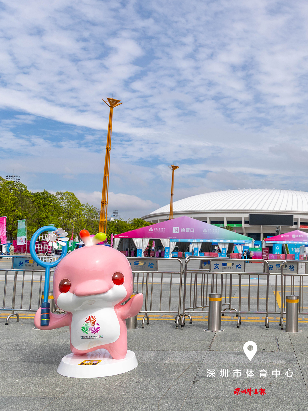 激情全运会,在福田区深圳市体育中心赛场外,可爱的十五运会吉祥物吸引了大家的目光和镜头,成为一处靓丽的打卡点。