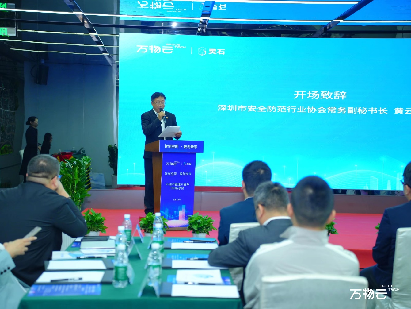深圳市安全防范行业协会常务副秘书长黄云萍出席活动并致辞,对万物云以 “灵石” 推动空间运营智能化的实践给予高度肯定。他表示,“灵石” 系统的应用助力安防行业向 “融合、智能、互联” 方向升级,而数据已成为城市发展的 “新血液”,未来行业竞争力将直接取决于数据采集与应用能力,希望业界携手共筑更安全、智慧、宜居的城市空间。