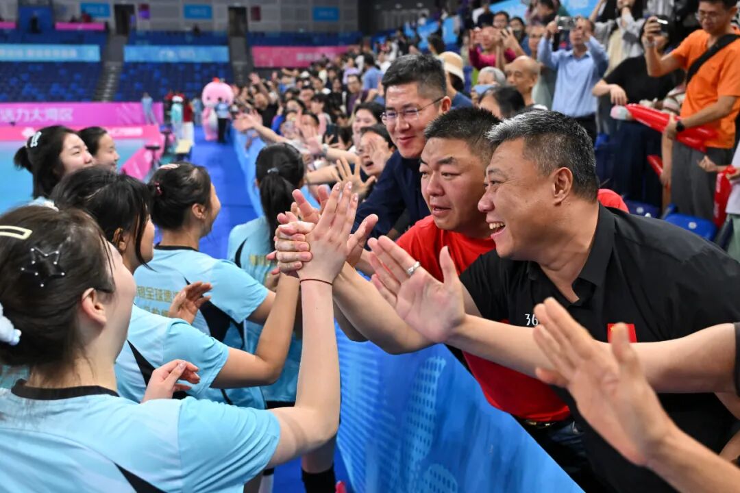 天津队球员在比赛后与观众击掌。图片来源:十五运会广东赛区执委会