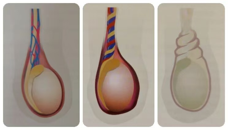 图2:鞘膜内型精索扭转,较多见,好发于青春期