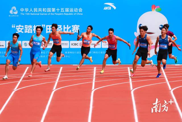 十五运会田径赛场进入最后一天的比拼,备受关注的男子4×100米接力在当天早上进行预赛。“亚洲飞人”苏炳添并未出战预赛。