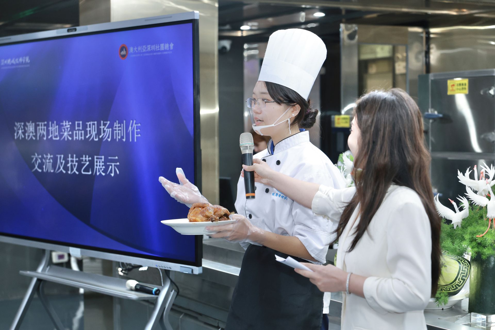 南澳海胆炒饭、脆炸沙井生蚝、火焰虾、钵酒焗蚝……11月18日下午,由深圳鹏城技师学院与澳大利亚深圳社团总会共同举办的“粤菜标准领航 深澳匠心共赏”厨艺交流活动在深圳鹏城技师学院广东省“粤菜师傅”海外交流基地举行。