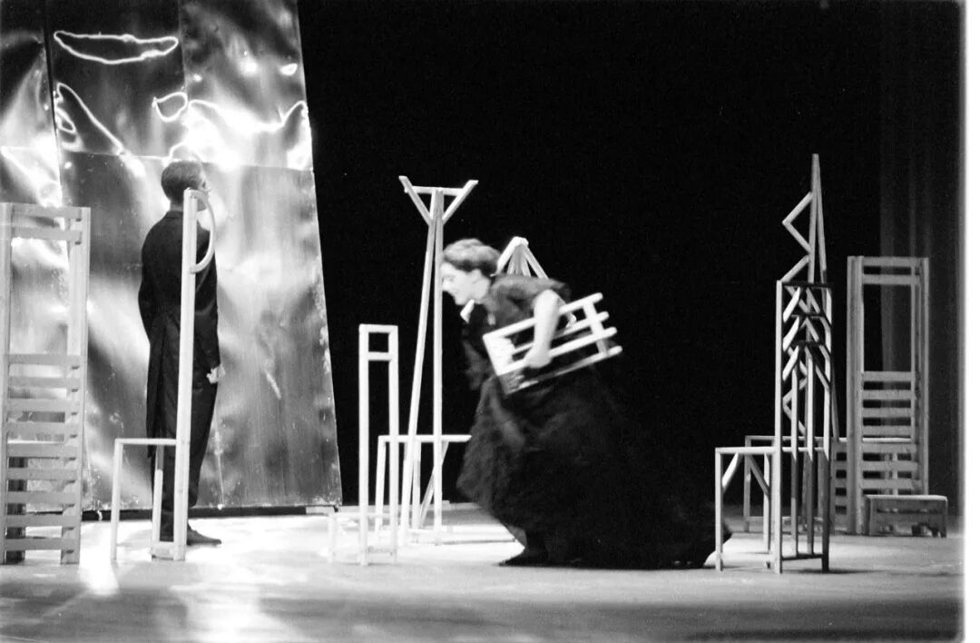 二人的艺术理念与尤内斯库的写作风格高度一致,曾在20世纪80和90年代多次表演过原版《椅子》。随着时代发展,他们从当今的社会议题中汲取灵感,全新改编了这部荒诞派经典作品,并在本次双年展全球首演,以荒诞不经的艺术手法对当下的人性命题进行深入解读。