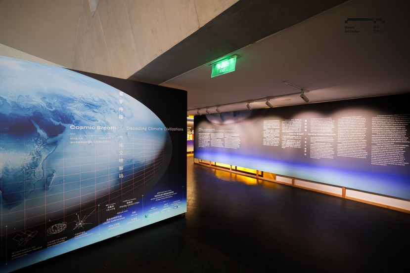 《寰宇呼吸:气候文明解码》展览以“从深圳到宇宙”为叙事主线,通过数据可视化、艺术装置与沉浸式互动,将抽象的气候科学转化为可感可知的体验,展览分为三大章节。