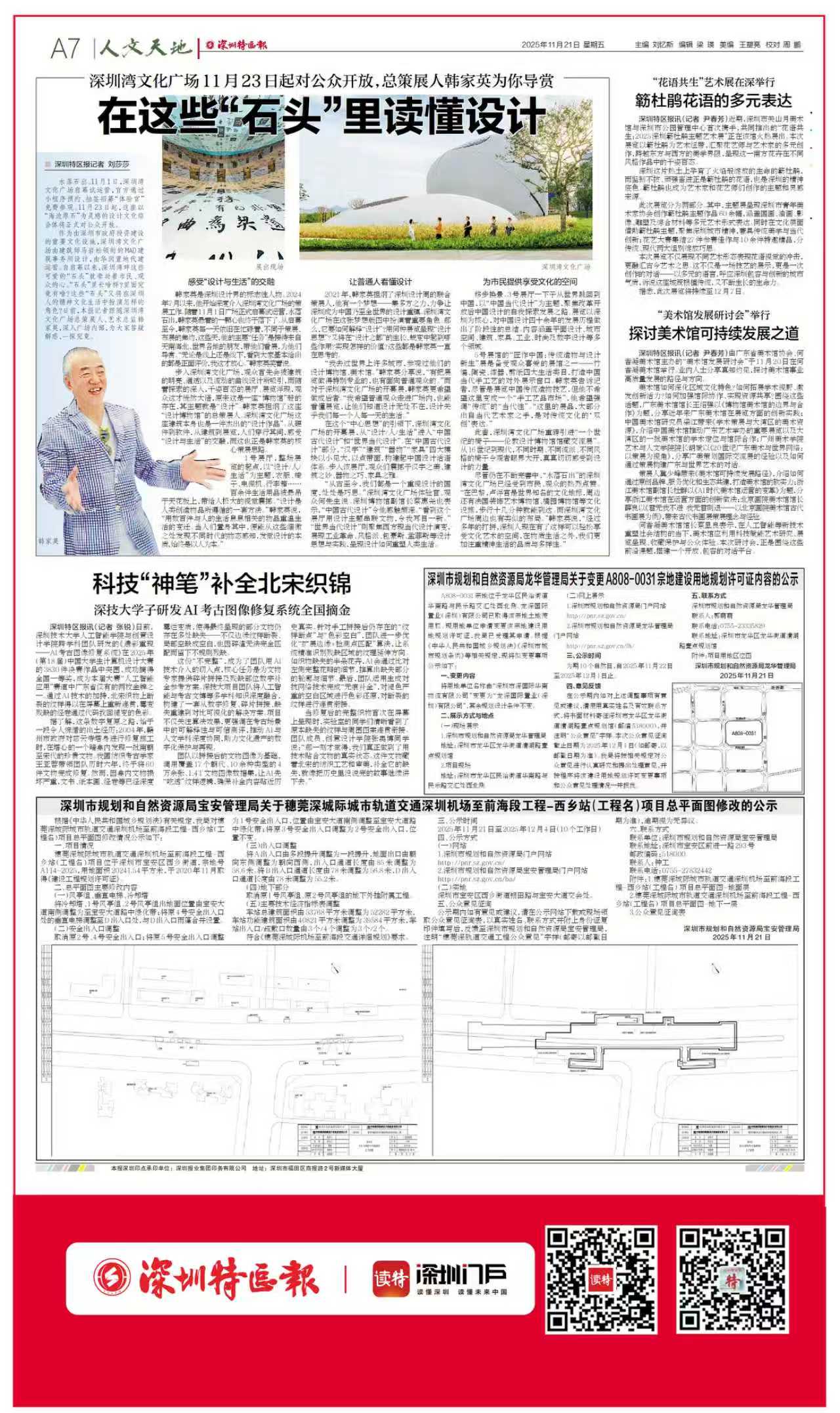 2024年7月以来,他开始深度介入深圳湾文化广场的策展工作。随着11月1日广场正式启幕试运营,水落石出,韩家英悬着的一颗心也终于落下了。从11月1日至今,韩家英每一天依旧在忙碌着,不同于策展、布展的焦灼,这些天,他的主要任务是接待来自天南海北、世界各地的朋友们,带他们看展、为他们导赏。“无论是线上还是线下,看到大家基本给出的都是正面评价,我这才放心了。”韩家英笑着说。