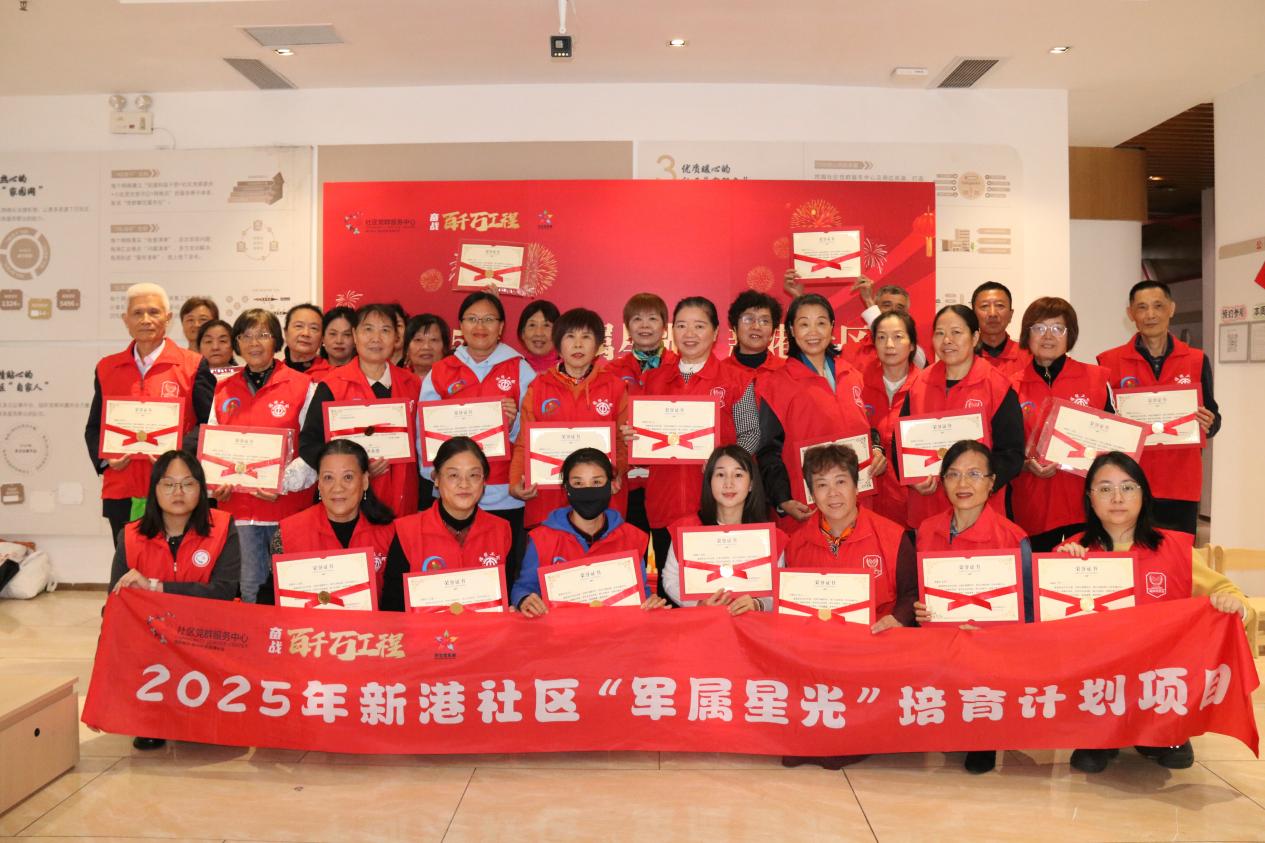 “军属星光” 培育计划总结会如期举行,40名军属、退役军人代表齐聚一堂。会上,社区通过照片、视频回顾活动点滴,军属分享从 “围着家庭转” 到 “能教孩子手工”“认识同频姐妹” 的成长收获,工作人员为志愿服务队成员颁发证书。此次计划不仅缓解军属生活压力,更让其收获价值感与尊崇感。未来,新港社区将持续完善 “军属星光” 服务体系,让这份星光持续闪耀,为军民融合发展注入温暖动力。