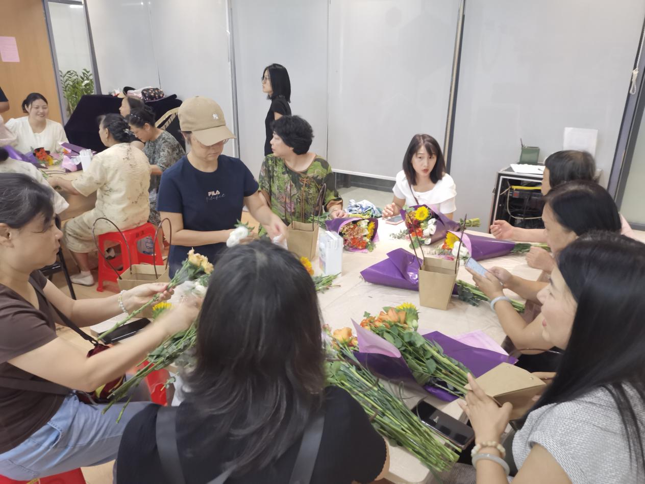 “军属星光”培育计划以一场温情满满的启动活动拉开帷幕。社区聚焦军嫂群体,组织沉浸式插花体验 —— 热烈的向日葵、清新的桔梗在军嫂们手中错落搭配,化作一盆盆精致花艺,在指尖劳作与花香萦绕中,舒缓了日常独自支撑家庭的压力。插花环节后,一场“心贴心”座谈会接续开展,工作员化身 “倾听者”,细致记录军嫂在情感陪伴、职业规划、家庭事务处理等方面的困惑与需求,同时详解培育计划的 “技能提升、暑期护航、红色传承” 三大核心板块,让军属清晰感知 “每一份需求都被看见”,为后续 “星光培育” 精准定向。