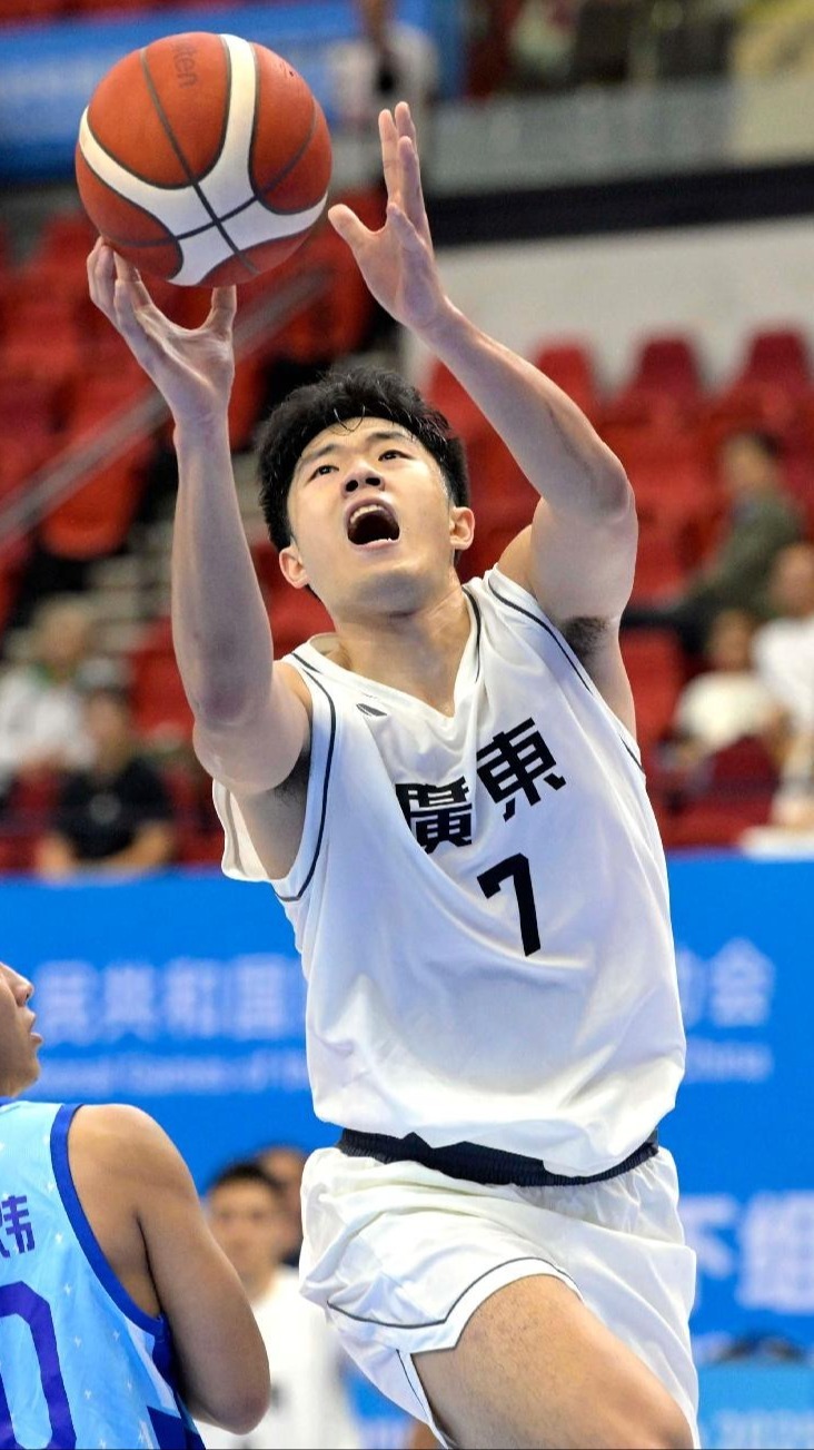 仅从数据统计来看,王浩然显然已把该做的事情做好,并尝试做到极致——场均27分6.5篮板4.6助攻。回看四年前的陕西全运会,王浩然场均8.5分钟入账2.8分2.2篮板,5场比赛合计入账14分。彼时的王浩然脚部骨折伤愈不久,更多时候是在比赛衔接段顶个几分钟。历经3个CBA赛季,以及国家队集训的历练,王浩然已成为广东U22男篮最值得信赖的进攻核心。