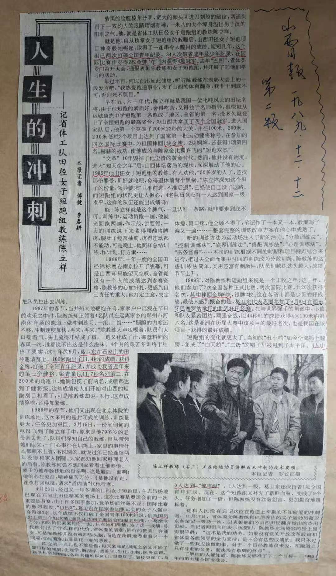 当年的《山西日报》报道这样描述陈立祥:“紫黑的脸膛棱角分明,宽大的额头凹进刀刻般的皱纹。”退役后,他回到山西当基层教练,带着队员在简陋条件下训练,常吼出那句口头禅:“我们条件差,但志气不能差!”