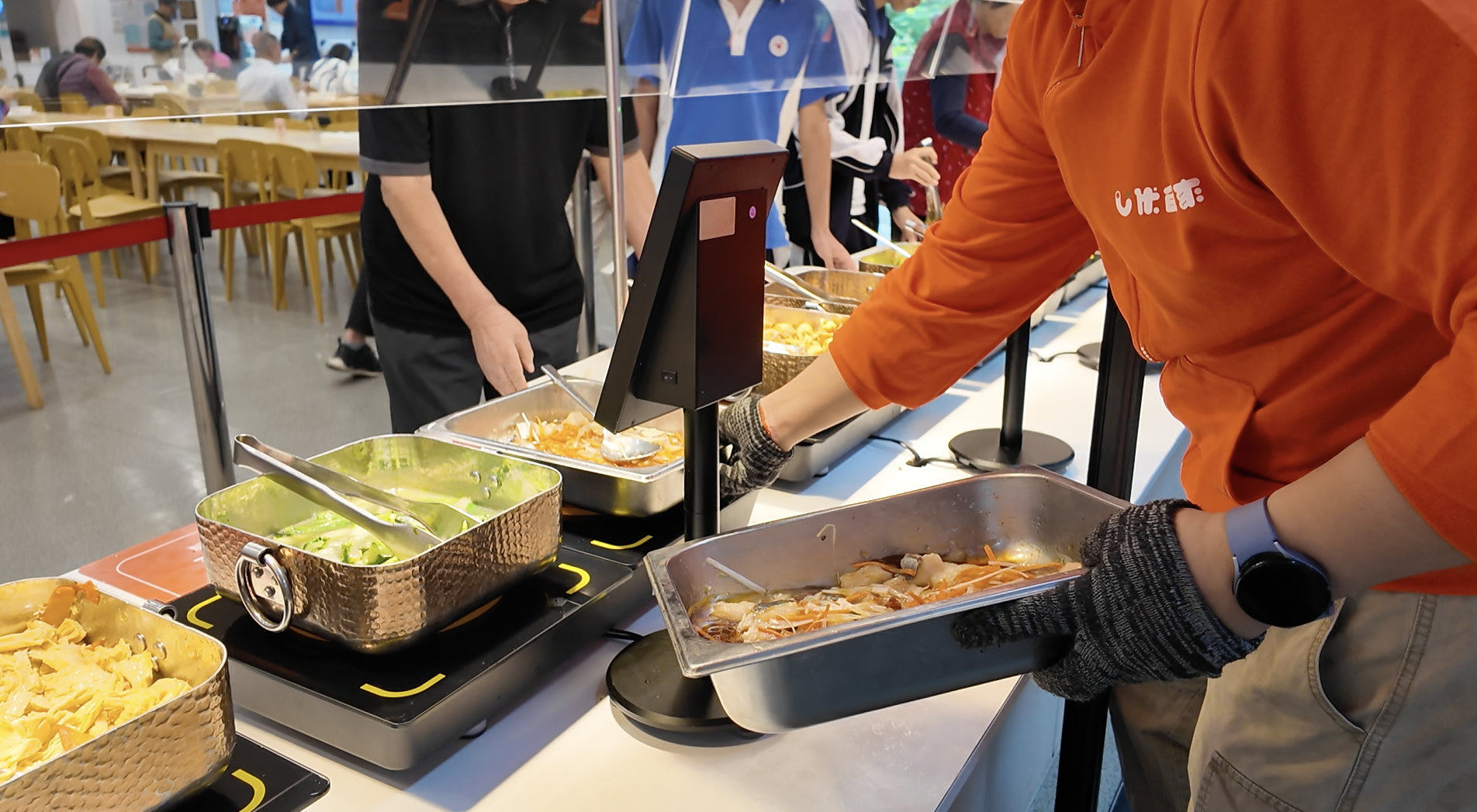 走进食堂,科技感与人性化设计融为一体:餐台每15分钟轮换菜品,保温餐柜恒温75℃,确保冬日用餐全程温暖;打餐档口加高10公分防溅挡板,荤素科学混搭摆放,可一站式完成营养搭配;电子菜单实时投屏,折扣水牌明示通道,价格政策一目了然。新增外场运营店长,从餐盘回收到动线引导全程护航。