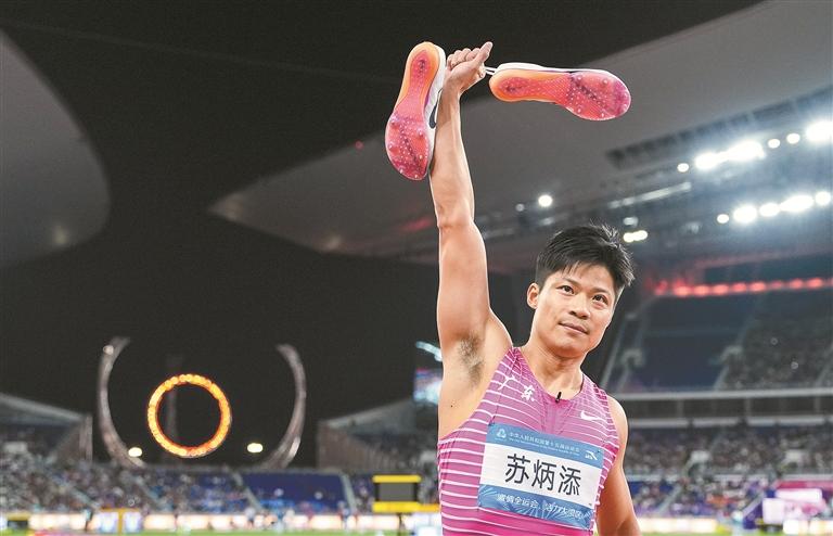 20日晚,广东奥体中心的气氛更加热烈。观众席比往常更早坐满,田径赛场最后一个比赛日,本就将现场情绪堆到顶点,更何况这还是苏炳添职业生涯的最后一战,万众瞩目。