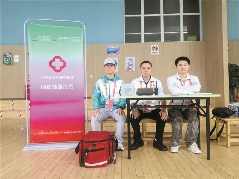 比赛场馆里,2站6点共8个医疗站点分布在运动员通道、观众看台、场外入口处等关键位置,就像一个个“健康驿站”。不管是运动员救场间隙的肌肉拉伤,还是观众突发的头晕不适,转身就能找到专业帮助。在2家赛事接待酒店,“一医一护一疾控一卫监”的4人小组24小时“驻点站岗”,深夜里参赛队员有突发不适,一个电话就能立刻上门,让大家住得安心、睡得踏实。