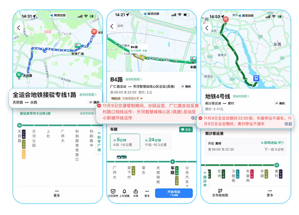 高德合作网约车平台亦积极推出区域优惠。例如,鞍马出行在广州部分场馆热门赛事的开场前2小时和结束后2小时期间,加大乘客补贴投放。喜行约车则向广州、深圳等11城乘客持续发放“百元出行补贴”,覆盖观赛、游览及日常通勤场景。