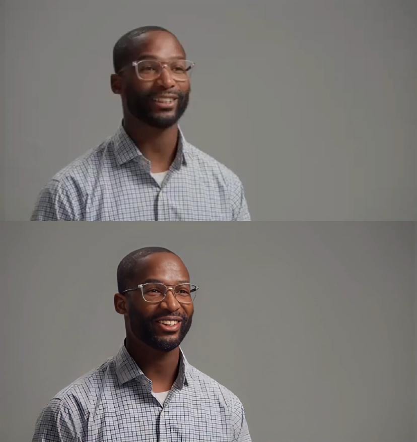 以一段因多次压缩而严重模糊的采访影像为例。上传一段视频后,可以使用全新升级的视频超清功能,改善原本模糊的人脸轮廓,并且保留人物的细微表情,让画面重新变得清晰。