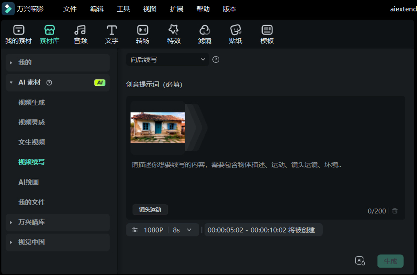 在实际测试中,当尝试扩充一段老房子的空镜头时,续写出的画面不仅在细节质感上与原素材完美契合,连光影变化都保持了自然的连贯性。