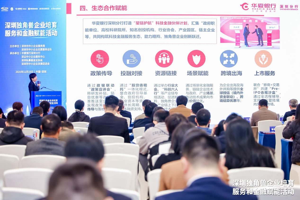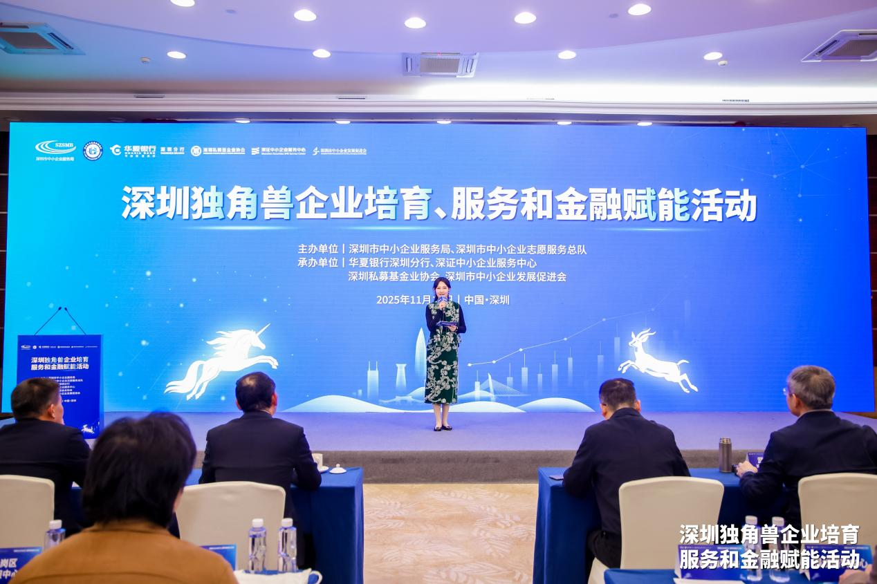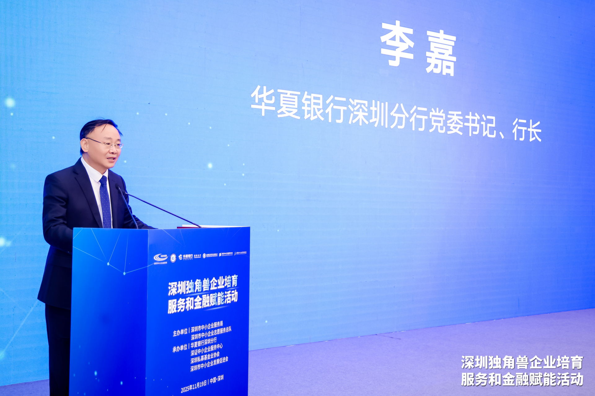 深圳市工业和信息化局党组成员、市中小企业服务局局长吕哲在致辞中表示,市中小企业服务局将聚焦梯度培育“精耕细作”,构建“种子—潜在—独角兽”金字塔式优质企业梯队,为企业“架桥铺路”,助力企业对接全球创新资源。随后,华夏银行深圳分行党委书记、行长李嘉在发言中强调,该行将在市中小局指导下,围绕梯度培育体系助力企业成长,宣布启动"深圳瞪羚独角兽企业-百亿授信赋能计划",将提供百亿元专项信贷额度,重点支持半导体、新能源、人工智能与机器人等硬科技赛道企业。该行科技金融部总经理苗淑丽解读“瞪羚独角兽专属服务方案”,依托"六看"评审体系精准识别科创企业价值,创新运用"投联跃迁贷""腾飞贷""订单贷""上市贷"四大产品,以"研发-扩张-上市-全球化"全生命周期服务能力,为瞪羚、独角兽企业提供精准支持。