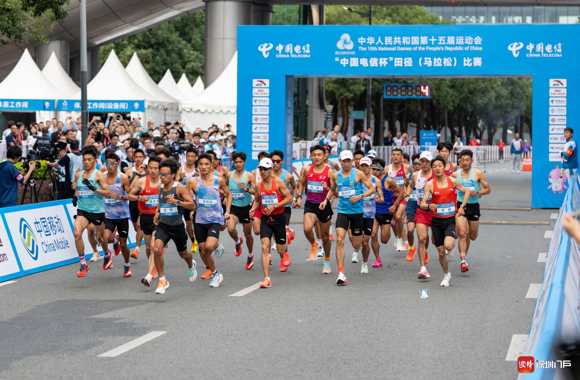 参加全运史上首个跨境马拉松赛的选手们在赛道上奔跑。深圳特区报&读特记者 赖犁 摄