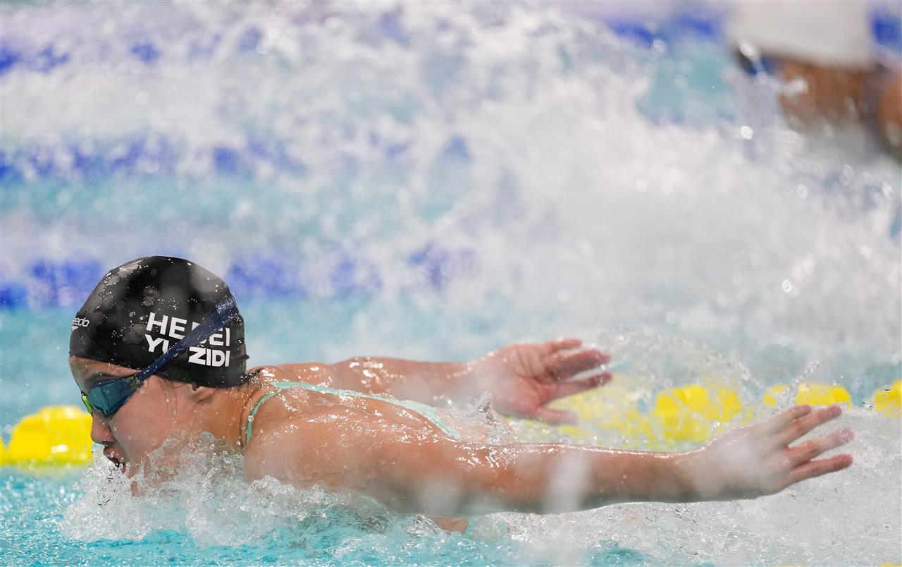 河北队13岁小将于子迪在女子200米个人混合泳决赛中,打破亚洲纪录。 新华社发