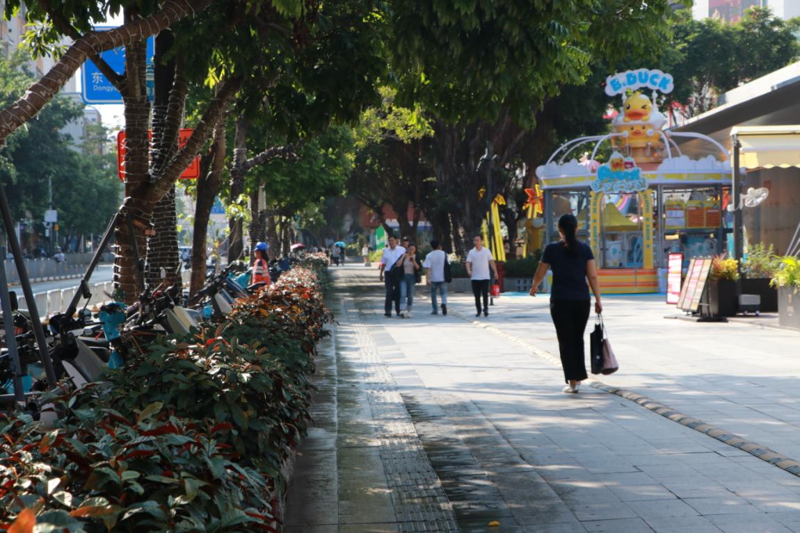 上步南路则通过科学调研,将停车区调整至路侧,让出1米宽度拓宽人行空间,显著提升行人通行的舒适度和安全性。“以前走人行道,得在电动车之间绕着走,现在终于能顺畅散步了!”市民李阿姨感叹道。