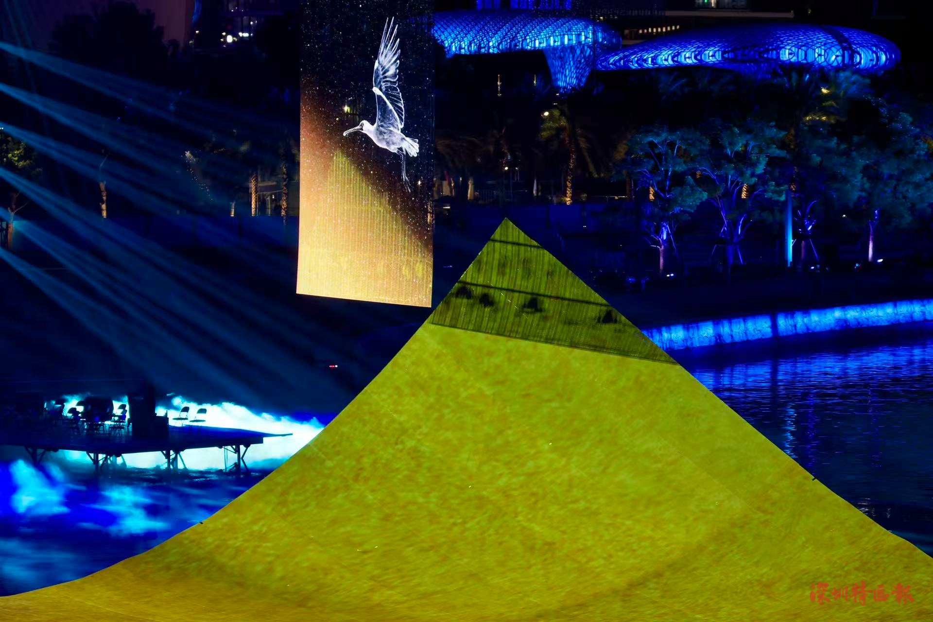 海天为幕、城市为景。11月21日晚,第十五届全运会闭幕式在深圳前海欢乐剧场举行。在现场,“水上舞台”格外引人注目,中央一张灵动翻转的主舞台,更是如纸般漂浮于水面,成为闭幕式的一大看点。记者从市建筑工务署了解到,这个舞台是目前国内规模最大、结构最复杂的水上升降舞台,有着不少设计与建造巧思。