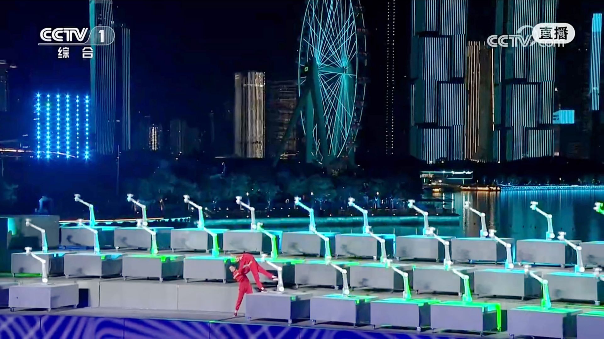11月21日,第十五届全国运动会闭幕式在广东深圳前海欢乐剧场举行。在文体展演《科创向未来》中,30台越疆高精度智能机器人与中国东方演艺集团首席舞者协同起舞,在海上搭建的舞台上,实现人机共演,开创国内舞台表演先河。