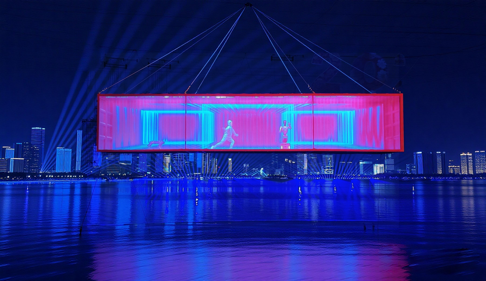 全球首次“海上+高空”双场景机器人集群表演。