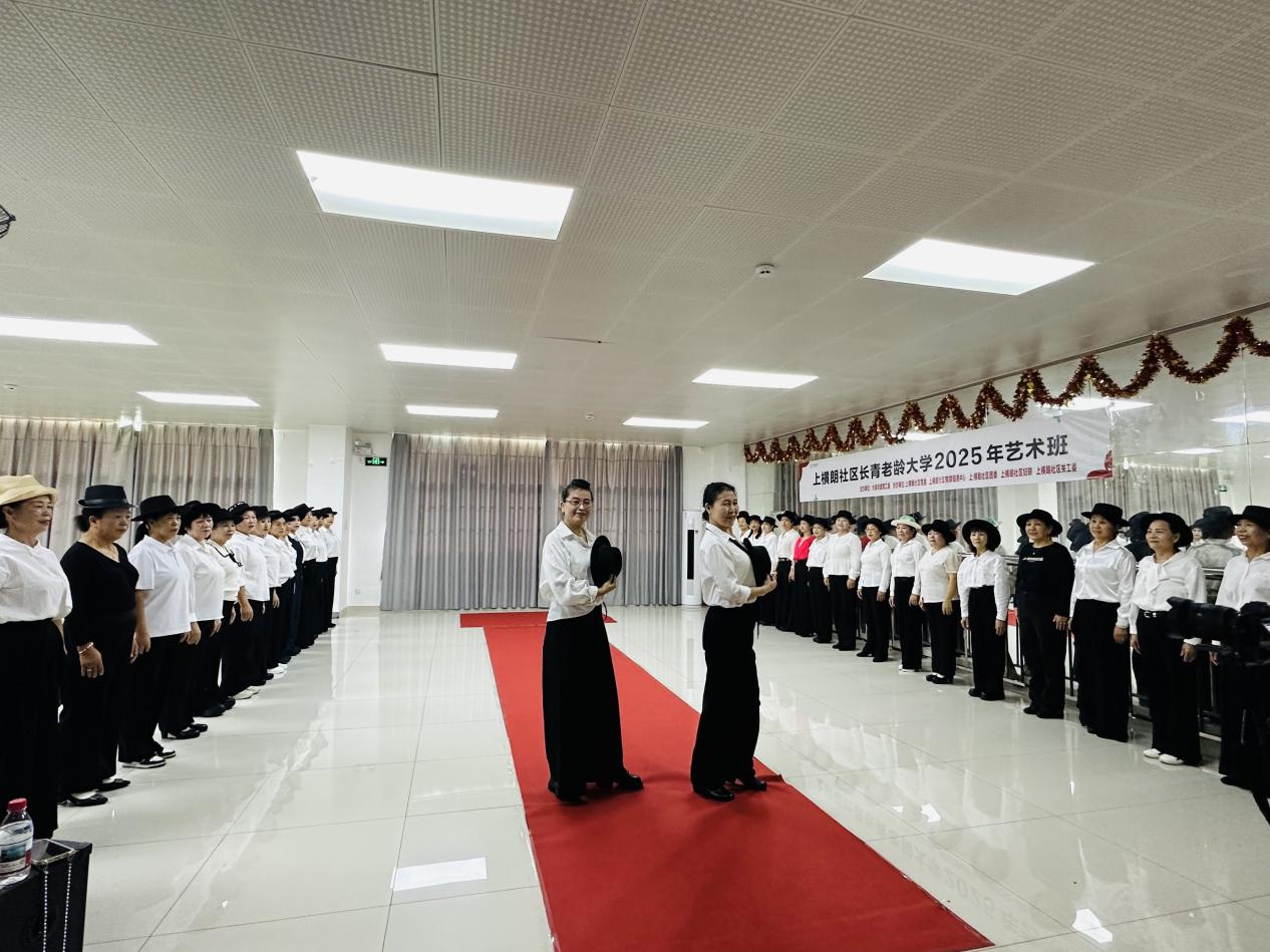课程开展期间,各班级的学习氛围浓厚,处处洋溢着银龄学员的活力与热情。太极课堂上,学员紧跟老师的节奏,一招一式细致打磨动作,在舒缓音乐中感受中华传统文化魅力;民族舞学员则伴随着轻快的旋律,舒展身姿、翩然起舞,尽显老年群体的蓬勃朝气。时装秀课程更是成为本学期的“人气焦点”,在最后一课成果展示环节,学员身着精心搭配的服饰,迈着稳健而优雅的步伐走上“T台”,转身、摆姿、每一个眼神、姿态都散发着自信与魅力,现场不时响起热烈掌声,为学员的精彩表现喝彩。