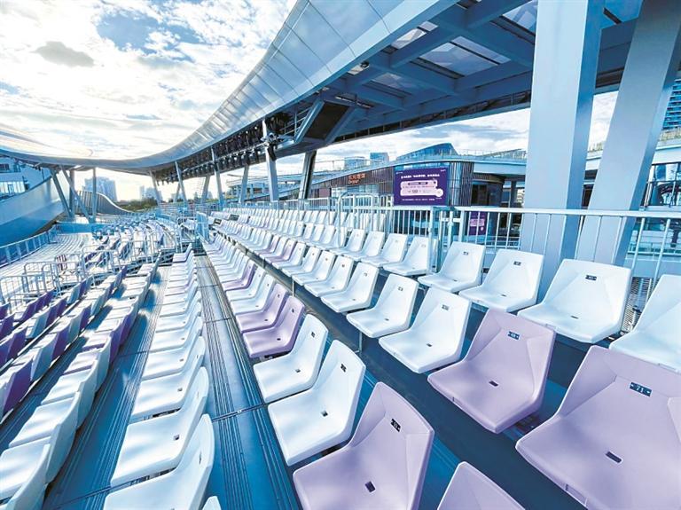 闭幕式舞台上光影流转,现场那片与城市海景完美呼应的“梦幻紫”看台,也意外成为观众镜头里的最佳背景板。你可能想不到,这8000个高颜值座位里竟有5500个是“临时工”,演出结束就要被“打包带走”,而这套“黑科技”,就来自宝安本土企业领先体育。