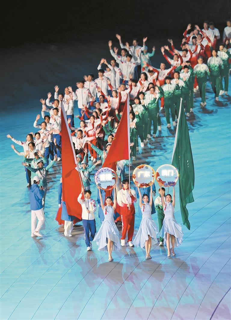 广东、香港和澳门代表团代表在闭幕式上一同入场。 新华社发