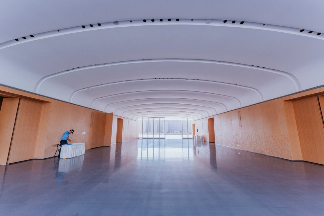 其4000平方米的超大覆盖面积,却实现了如此“隐形”效果,得益于STFE膜材这种高性能航天材料的运用。在阳光直射时,它能滤掉近半自然光线,同时阻隔四成热量,自带“柔光滤镜”,即便夏季也能保持清凉舒适的体感。 — 与传统的玻璃顶棚相比,其重量不过1/10,却具有极佳的张拉强度,可抵御14级台风。同时,它还防水、阻燃、耐腐蚀,完美平衡了多项实用需求。