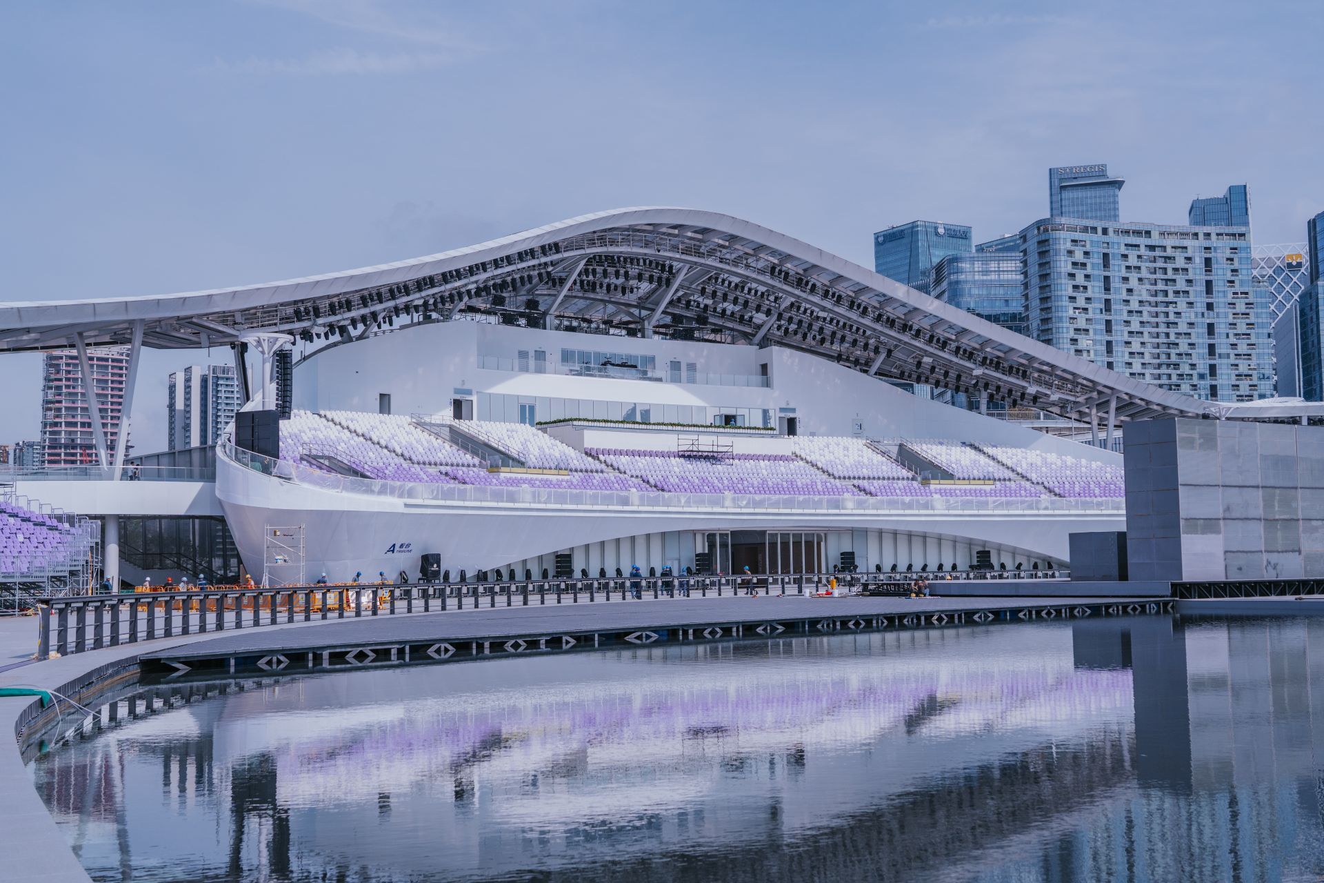 欢乐剧场坐落于前海宝中片区最南端,以“同心共享、潮起前海、舞动湾区”为设计理念,依托欢乐港湾的海景与城市天际线,将剧场空间向自然敞开,让观众在涛声与光影间,尽享独特的滨海剧场体验。
