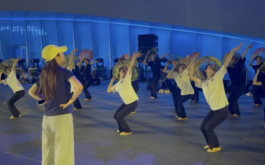 福海中学舞蹈团更显青春力量。这支2024年刚成立的团队,19名舞蹈特长生耗时3个月打磨原创舞蹈《云纱帽韵》,通过纱巾流转模拟香云纱光泽、凉帽摆动还原客家风情的创意编排,将两项广东非遗元素搬上国家级舞台。