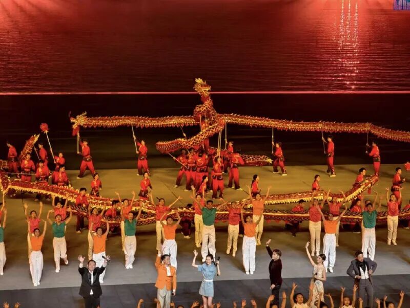福海街道和平社区舞龙队是一支地地道道的社区队,无全职队员却凭借坚持,从社区广场舞走向国际舞台,2023年成为宝安区非遗项目后,此次与4所学校52名学生组成的宝安龙狮队合作,在《龙的传人》表演中,以18米长龙同步腾跃的高难度动作,展现非遗传承活力。