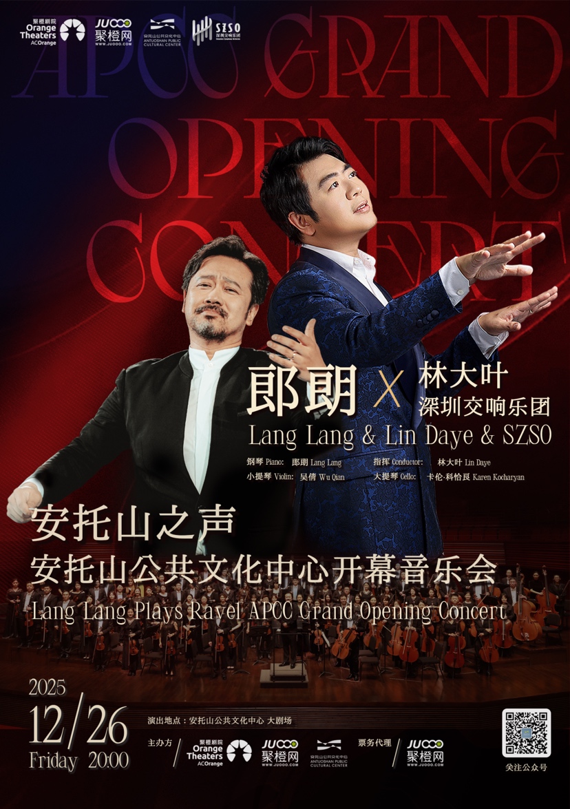 作为古典乐坛最具影响力的中国名字、首位跻身好莱坞名人堂的华人钢琴家,郎朗的每一次登场都代表着中国艺术家的国际高度与艺术深度。而他即将与深交联合呈现的“安托山之声”,融汇东西、跨越时代,用一场“艺术漫游”串联起世界经典:从伯恩斯坦《老实人》的灵动序曲,到拉威尔《G大调钢琴协奏曲》的浪漫华彩;当《天鹅》的优雅旋律,遇上《一步之遥》的热烈探戈;以《轻骑兵序曲》的昂扬节奏,碰撞《乡村骑士》的深沉间奏……这场音乐盛宴不仅为鹏城乐迷镌刻一段难忘的艺术记忆,也照见安托山公共文化中心的初心:让公众于都市中感知自然脉动,在艺术中遇见城市未来。