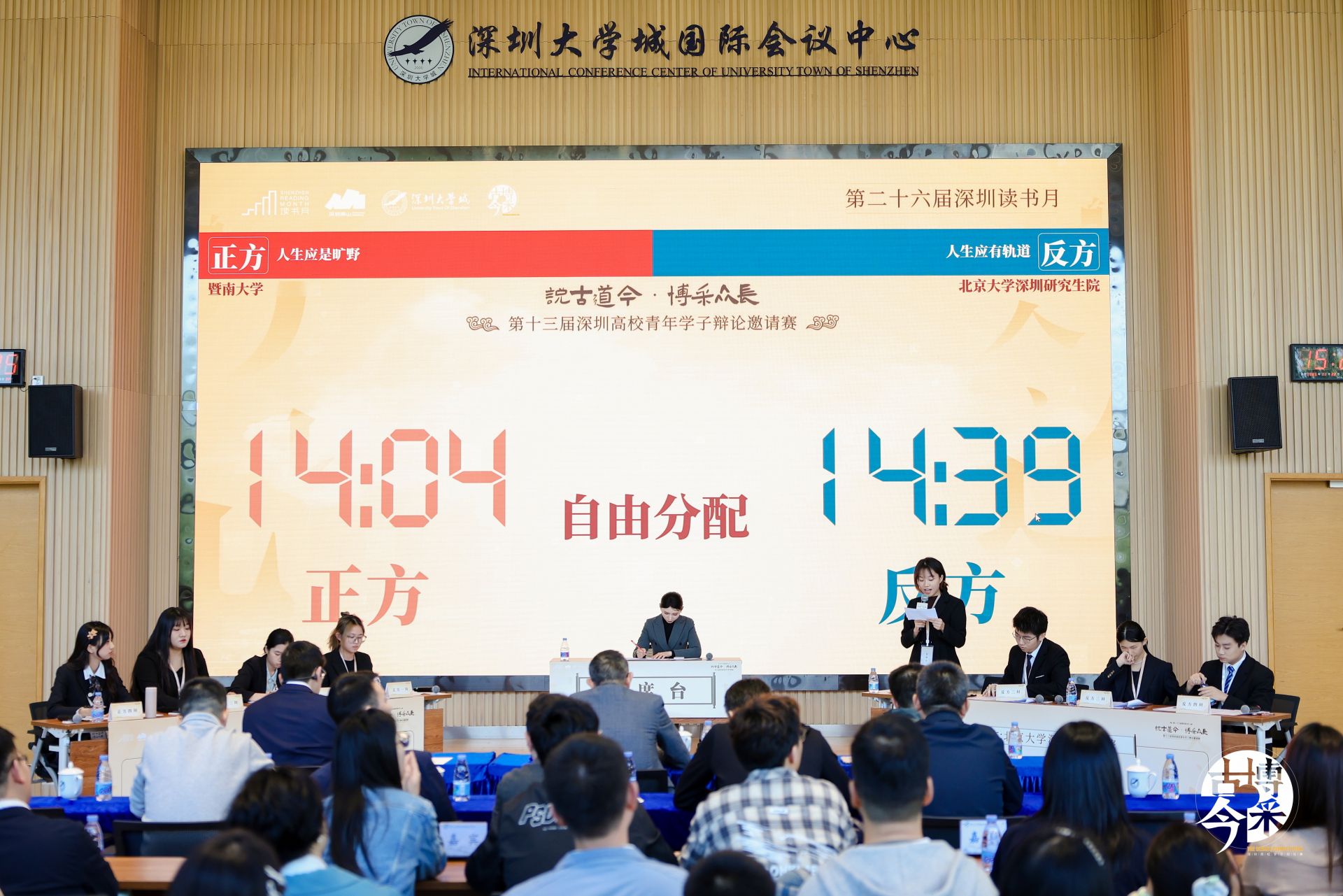 为促进“无界之城”融合发展,以思辨舞台凝聚高校青春力量,11月22日,由共青团深圳市委员会、深圳市学生联合会主办,南山区委宣传部、大学城运营管理筹备工作组、南山区桃源街道办事处承办的第二十六届深圳读书月——“说古道今•博采众长”第十三届深圳高校青年学子辩论邀请赛总决赛在深圳大学城国际会议中心举行。