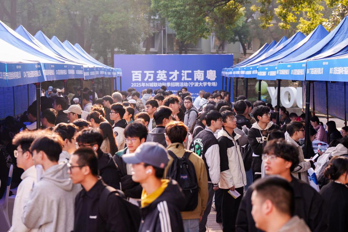 11月21日,“百万英才汇南粤”2025年N城联动秋季招聘活动在浙江大学紫金港校区体育馆举办