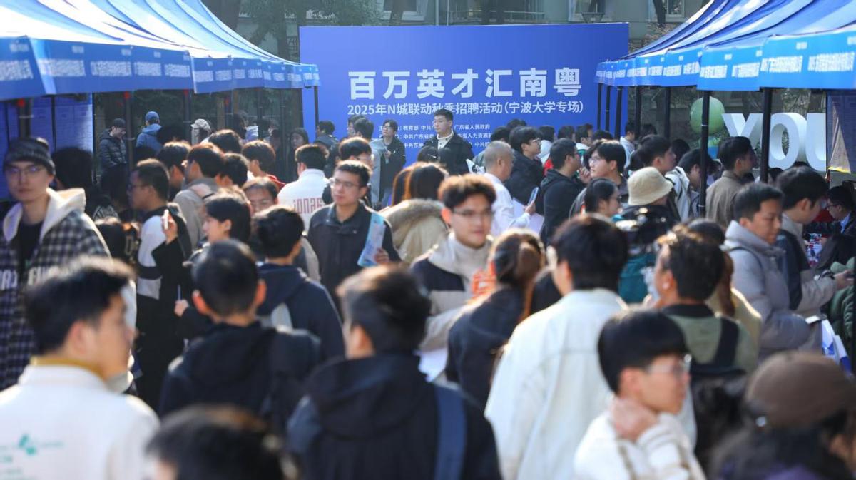 走进浙江大学招聘会现场,大科学装置、科技企业与城市文化展区共同构成了年轻、开放、创新的南粤就业图景。