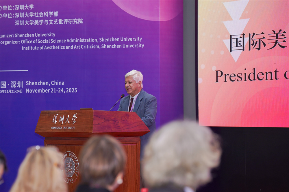 11月22日上午,研讨会开幕式在深圳大学粤海校区校友广场举行。开幕式由深圳大学美学与文艺批评研究院副院长李健教授主持,深圳大学社会科学部副主任宗祖盼,中华美学学会会长、深圳大学美学与文艺批评研究院院长高建平,国际美学协会主席罗德里戈·杜阿特,深圳大学荣誉资深教授胡经之等嘉宾先后登台致辞。宗祖盼代表深圳大学社会科学部,向远道而来的各国美学专家致以热烈欢迎。他介绍了深圳大学建校以来的文科发展成就及该校美学与文艺批评研究院在美学研究、学术交流等领域的突出贡献。高建平回顾了多年来中华美学学会推动中外美学交流的历程,充分肯定了本次会议重启面对面学术交流的重要意义。罗德里戈·杜阿特在致辞中强调,期待中外美学界加强交流互鉴,以多元美学智慧助力人类文明对话。胡经之回顾了三十年前在深圳举办的首次国际美学会议,并提出当代美学研究应重视价值论维度,应对审美现象多作价值分析。与会专家一致认为,在全球化进程面临困境的当下,跨文化美学对话既是不同文明交流互鉴的重要纽带,更是推动美学学科创新发展的必然路径,希望通过本次研讨会凝聚全球美学智慧,为当代美学研究注入新活力。