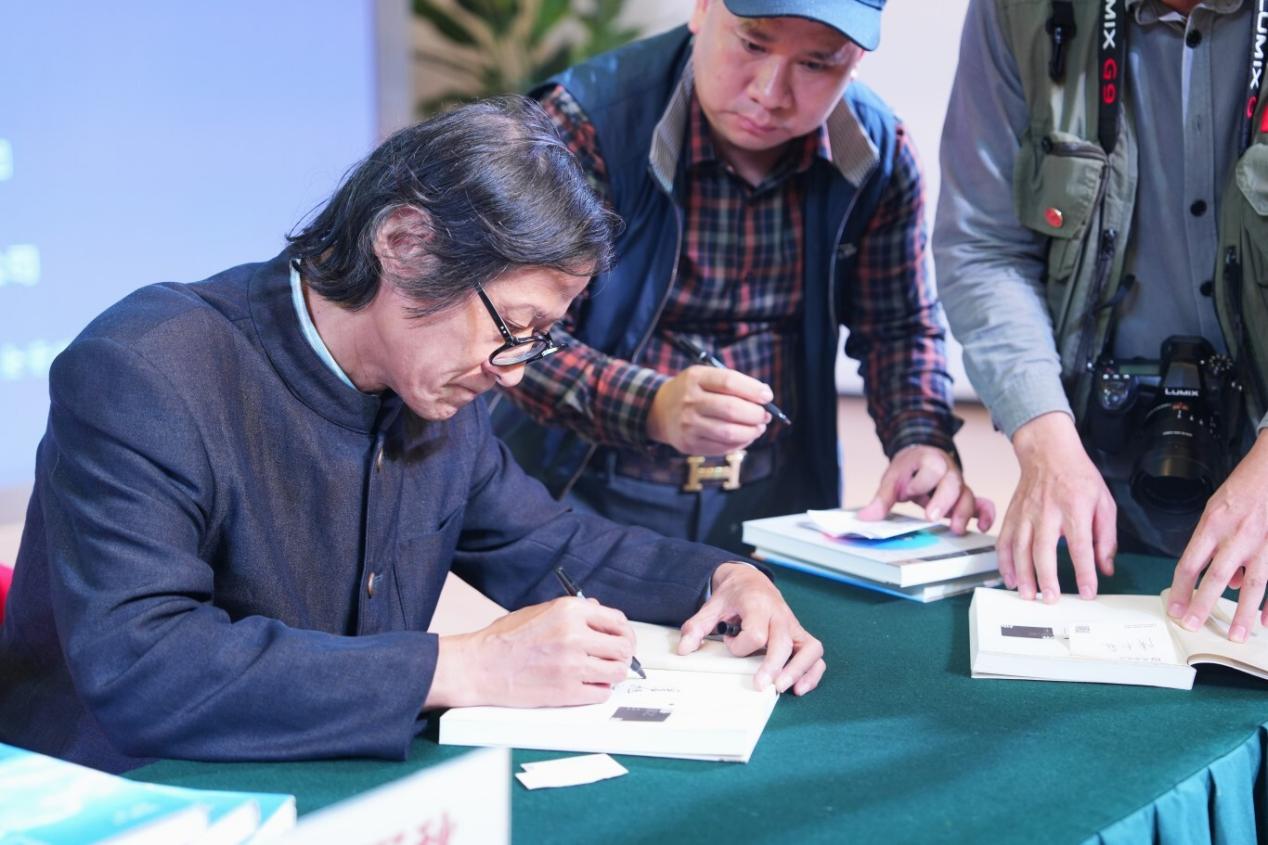 值得一提的是,古文字书法家苏云先生也来到现场聆听讲座,他带来了专门为胡野秋题写的书法作品并上台赠送,以贺《落脚之地》新书出版,现场气氛热烈。