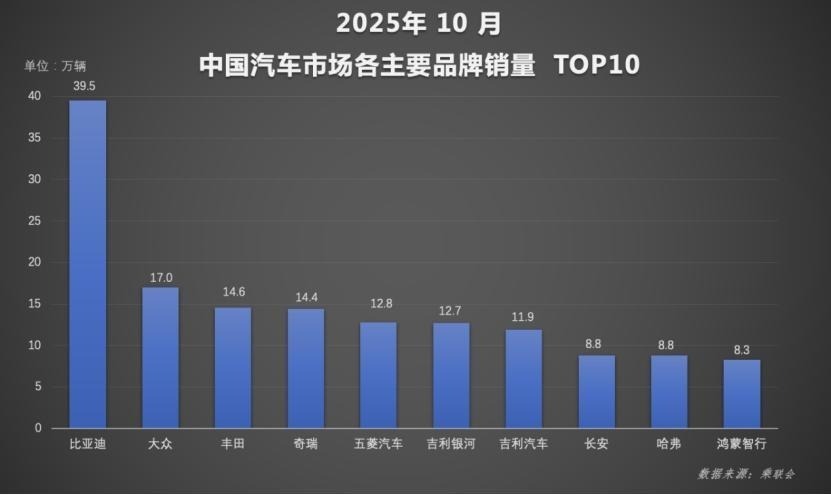在此背景下,比亚迪市场优势持续巩固,前十月累计销量规模与行业内第二至第四名总和相当。其中,王朝网与海洋网作为核心销售板块,10月销量39.5万辆,1至10月累计达338万辆,为整体销量增长筑牢基础。