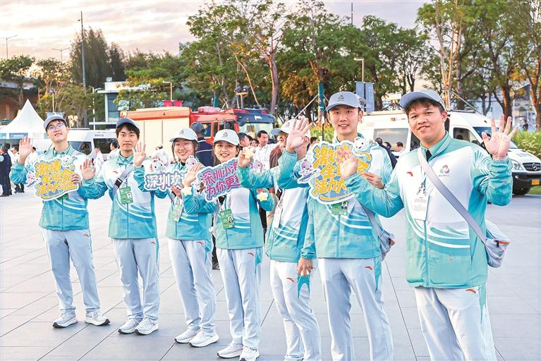 深大人文学院汉语言文学(师范)专业的大二学生王静怡是一名土生土长的深圳人。她表示,深圳这座“志愿者之城”的伟大精神,自幼便浸润着她的成长。“志愿精神已从最初的实践体验,内化为指引我成长的坚定信念,让我懂得团队协作是力量的源泉,无私奉献是价值的核心。正是这些经历,让我渴望在更高、更大的舞台上贡献青春力量,践行青年担当。”作为十五运会和残特奥会颁奖礼仪志愿者先锋队的一员,深大传播学院研究生扶静怡也对“志愿者之城”赞不绝口。“深圳的志愿服务体系特别完备,有‘志愿深圳’系统和高校义工联,志愿服务的时长、内容都能量化、可视化,而且项目多元化,能满足不同人的需求。”她认为,正是这样完善的体系,让更多人愿意加入到志愿者的行列中,让“志愿者之城”的称号名副其实。