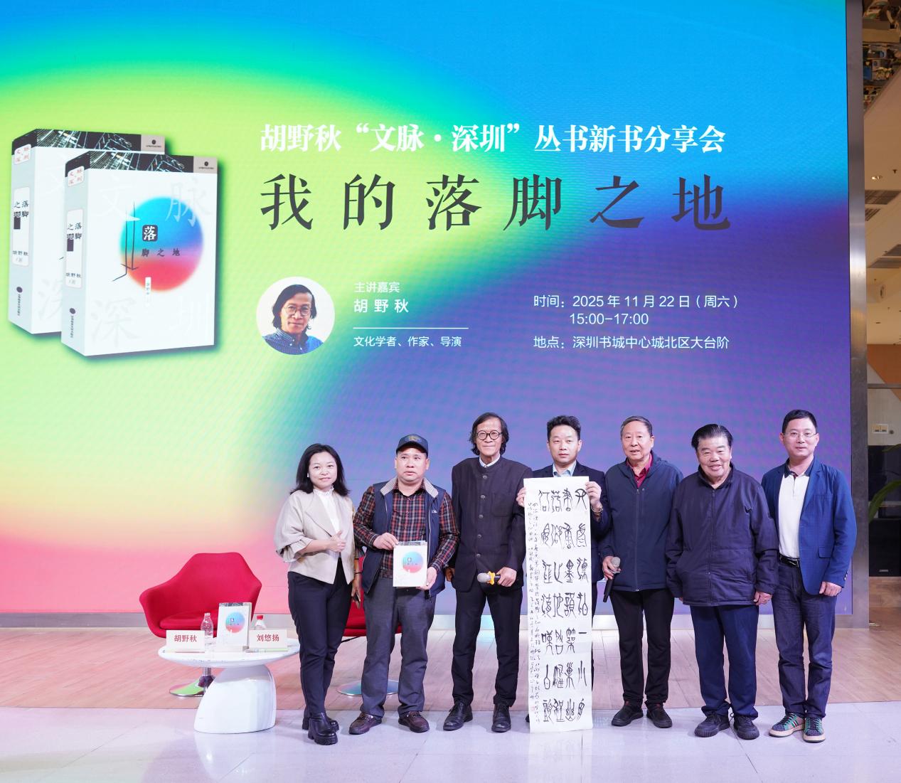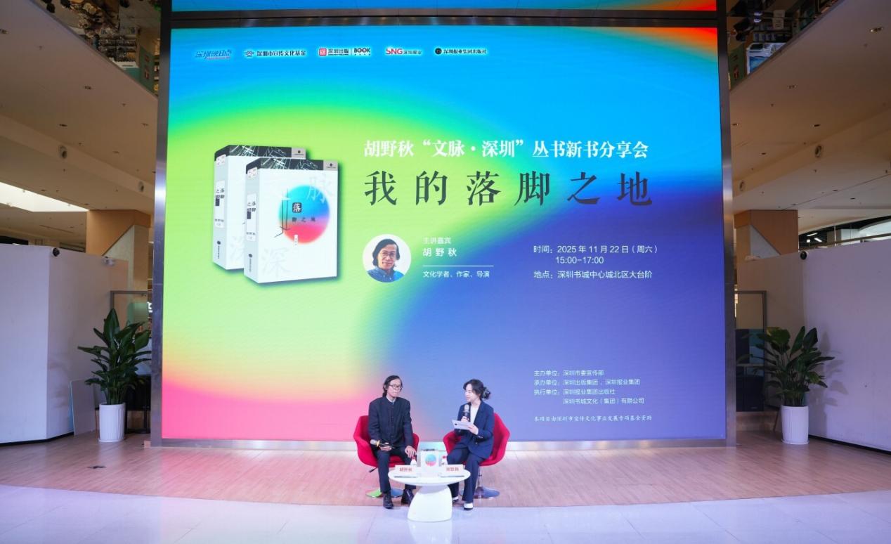 本场活动由深圳市委宣传部主办,深圳出版集团、深圳报业集团承办,深圳报业集团出版社以及深圳书城文化(集团)有限公司执行。文化学者、作家、导演胡野秋先生和现场观众分享了其新书《落脚之地》的主要内容,与现场读者们开启一场关于深圳地名、城市记忆与身份认同的“文化寻根”之旅,共同了解深圳的“前世今生”。随后与主持人深圳报业集团出版社副总编辑刘悠扬展开对谈,就“深圳的文脉与自己的关系”等主题与现场读者互动交流。