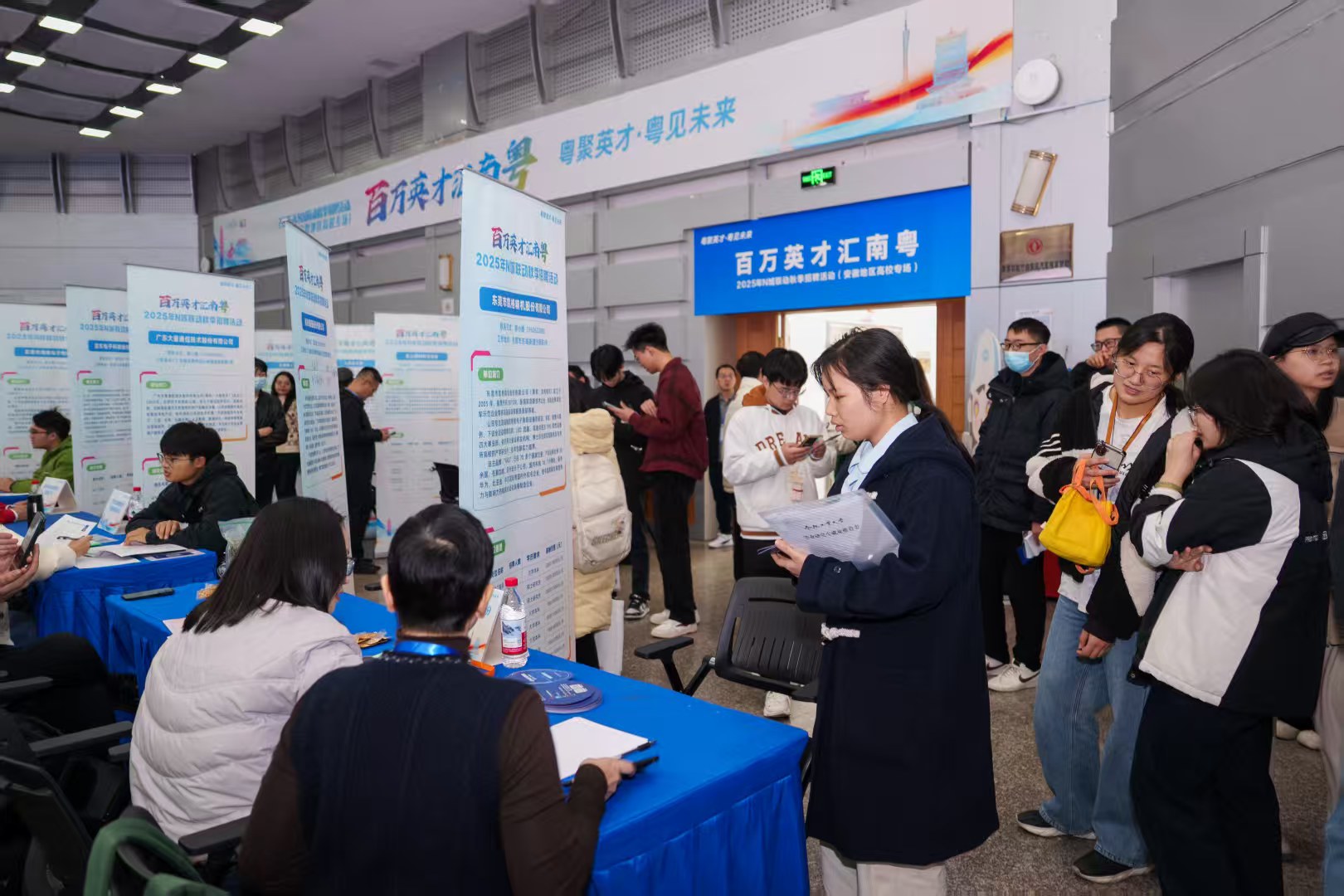 合肥工业大学的叶同学是材料成型及控制工程专业的本科生,已保研至北京理工大学珠海校区,这次来主要找实习机会,“投了七八份简历,还是最想来这儿。”作为东莞厚街人,她对松山湖材料实验室早有关注:“这里拥有世界顶级的科研设备,汇聚优秀的科研人才,氛围、待遇、环境好。”刚和HR聊完,她脸上满是期待:“HR说寒假有机会实习,能提前了解企业需要什么技术,为自己的研究生阶段的学习和就业扎实基础。” 叶同学和安徽的学生推介东莞,“东莞是制造业名城,有很多理工科专业学生对口的岗位,这里的人很热情也很务实,是年轻人干事创业的大舞台。”