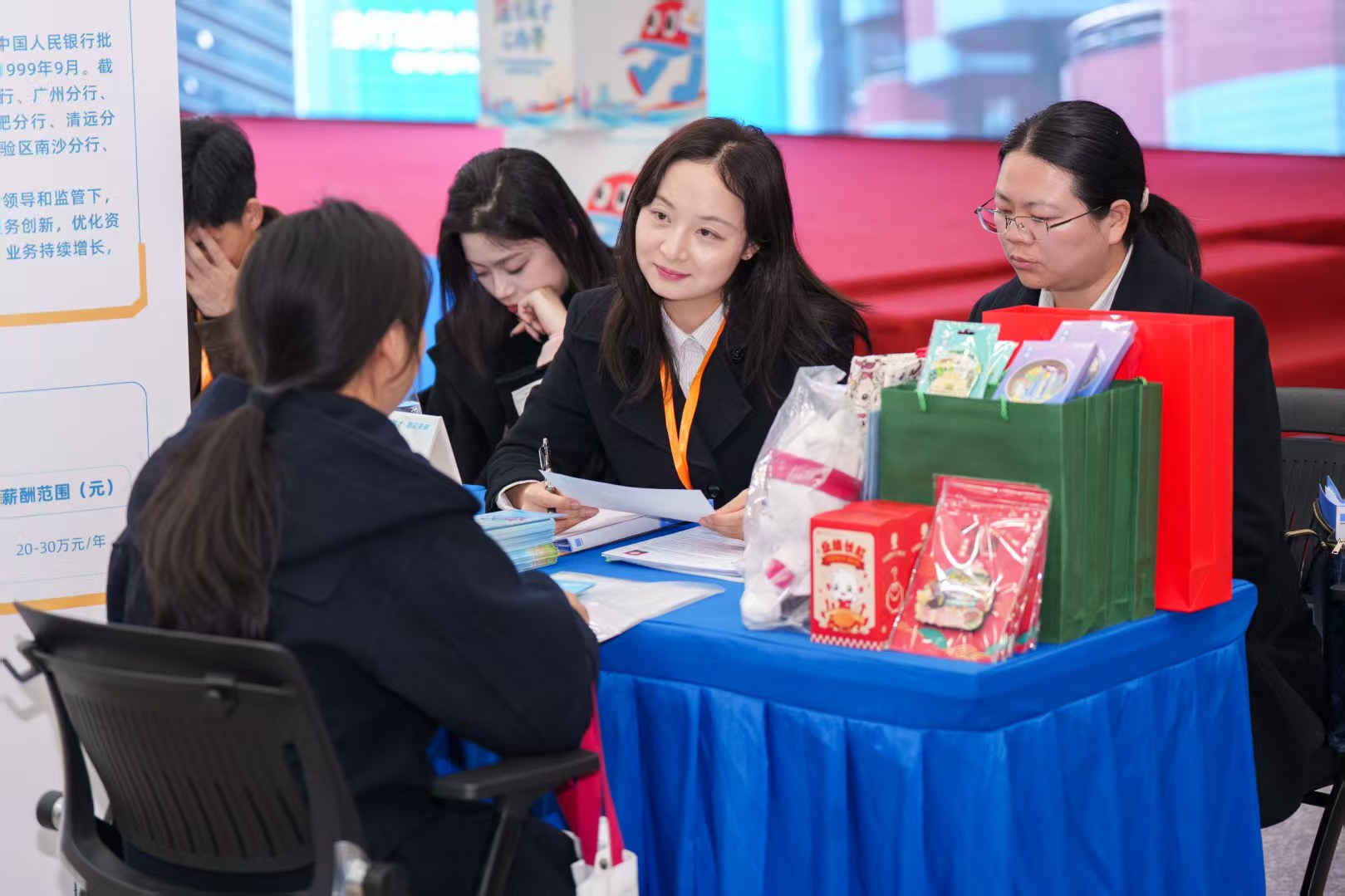 活动现场有序而热络,学子们围站成圈在企业展位前,有的低头翻阅岗位手册,有的拿着简历与招聘负责人交流,“同学你是什么专业的?”“这个岗位的晋升路径如何?”一问一答满是双向奔赴的期待。