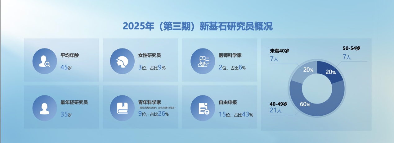 第三期“新基石研究员”共有35位,其中,数学与物质科学领域19位,生物与医学科学16位。