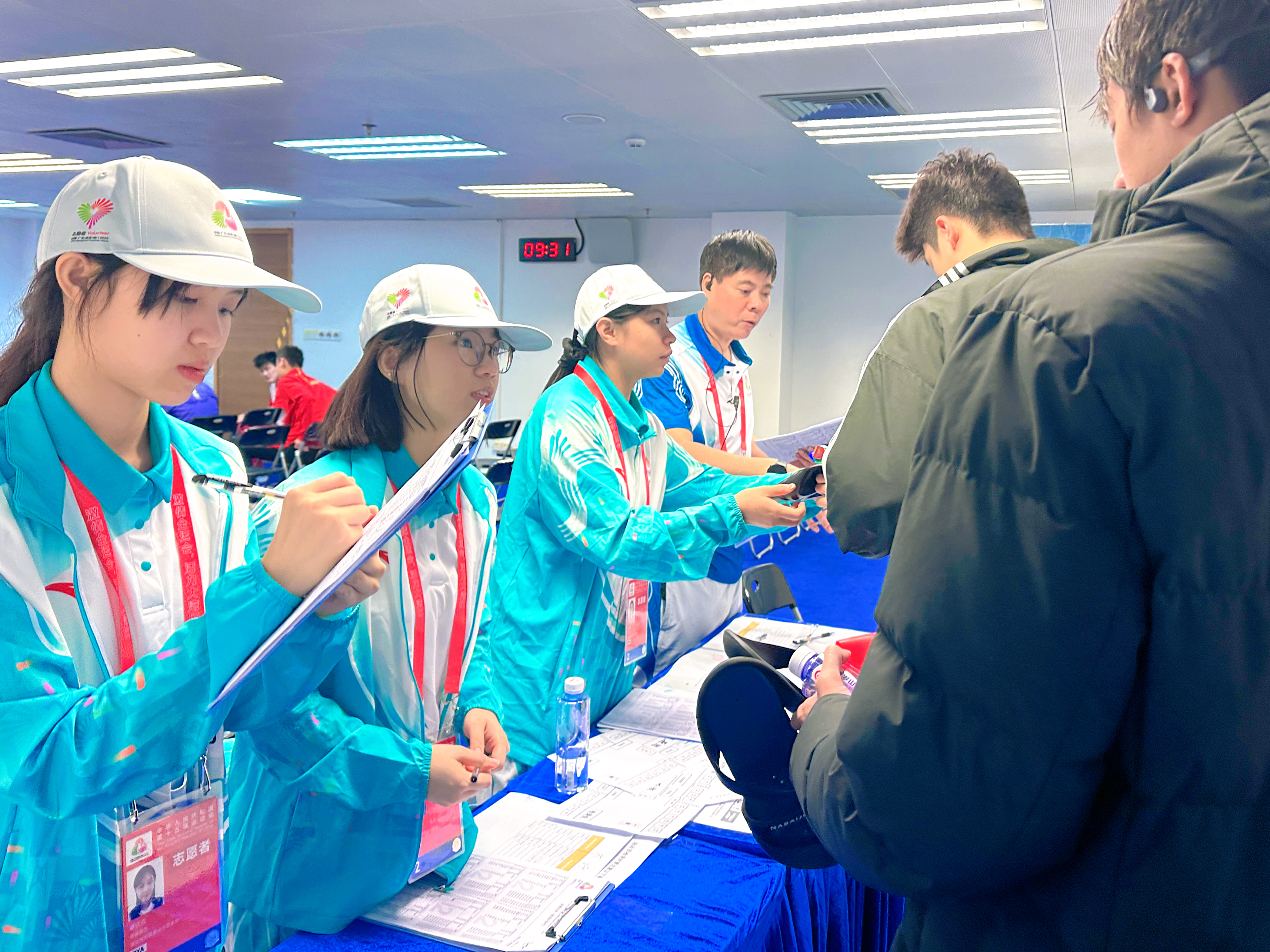 在专业服务的背后,是更多温暖人心的坚守:身体不适的小黄同学始终不愿离开服务岗位,有着五年军旅经历的小李同学脚磨水泡仍坚持服务……他们的付出赢得了赛会组委会的高度评价:“深信志愿者纪律严明、业务精湛,是我们最信赖的伙伴。”运动员们也与志愿者亲切互动,留下一个个暖心瞬间。