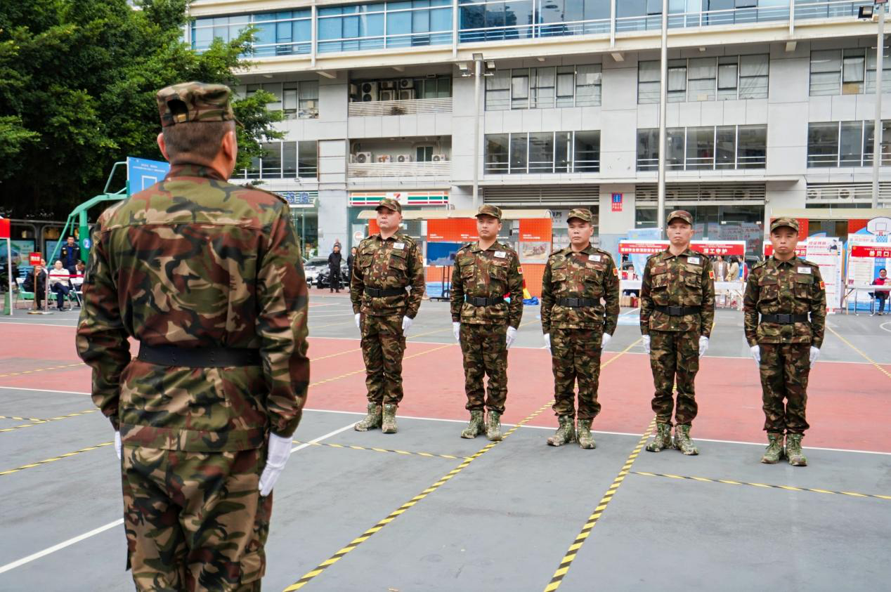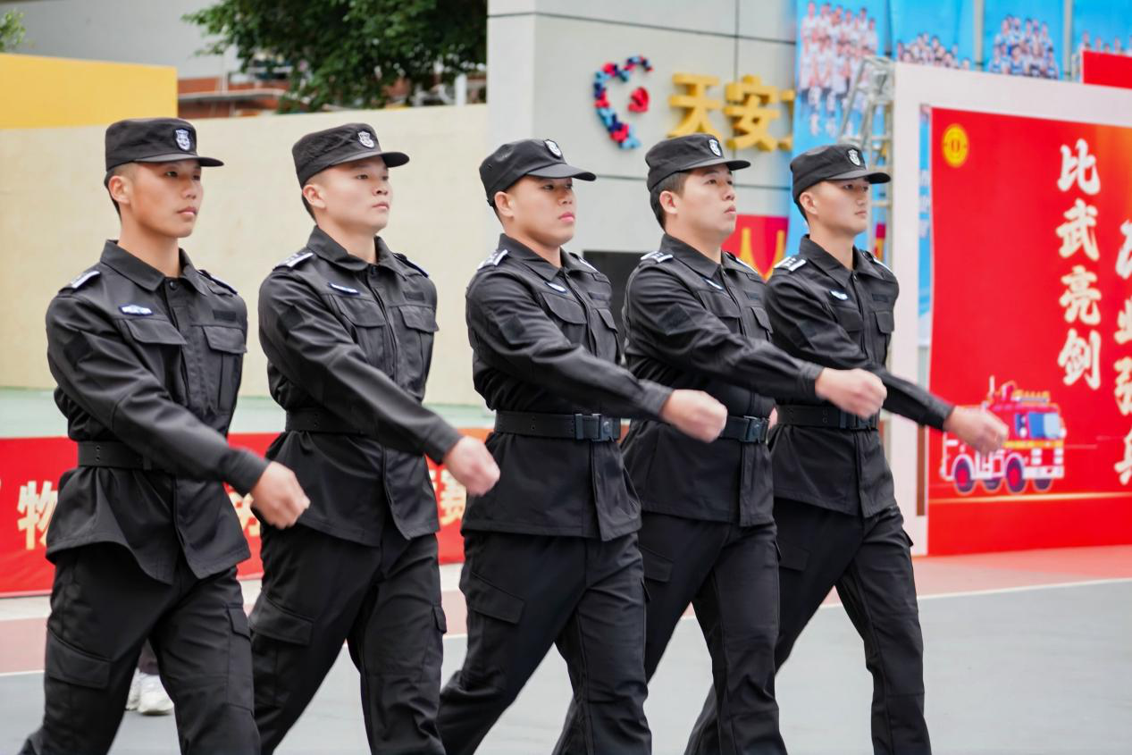本次竞赛聚焦安保工作关键技能与民生服务重点,设置三大核心竞赛项目,全方位检验参赛队伍的综合能力。队列技能展示环节中,每支队伍派出 6 名队员组成方阵,在 3 分钟内完成立正、稍息、跨立、停止间转法、齐步与立定、正步与立定等一系列标准动作。队员们身着统一队服,精神抖擞、动作规范,排面整齐划一,口号铿锵有力,充分展现了安保队伍严明的纪律意识与良好的精神风貌,评委从动作规范性、整齐度、精神面貌等多个维度进行量化评分。