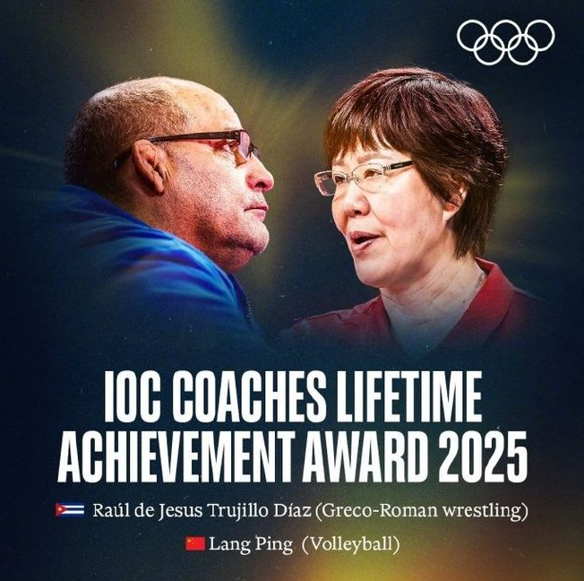 当地时间11月24日,国际奥委会宣布,来自中国的排球教练郎平和来自古巴的摔跤教练迪亚斯获得国际奥委会教练终身成就奖。