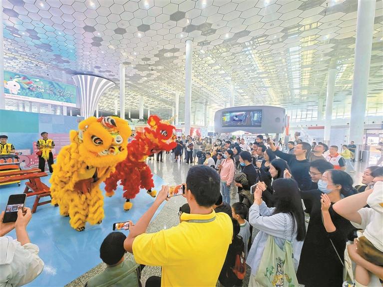 非遗与现代文明的碰撞,让城市更具人文魅力。在深圳宝安国际机场举办的“遇见宝安·文明有礼”主题活动中,国家级非遗项目上川黄连胜醒狮团的精彩展演,棉塑、木刻画、夏氏灯笼等非遗精品的展示体验,古琴演奏的悠扬旋律,让来自五湖四海的宾客沉浸式感受宝安千年文脉与现代活力。如今,这类“非遗+文明”展示活动已走进社区、商圈、校园,通过“活态传承”让传统文化成为文明城市的鲜活注脚,让市民在文化熏陶中提升文明素养。