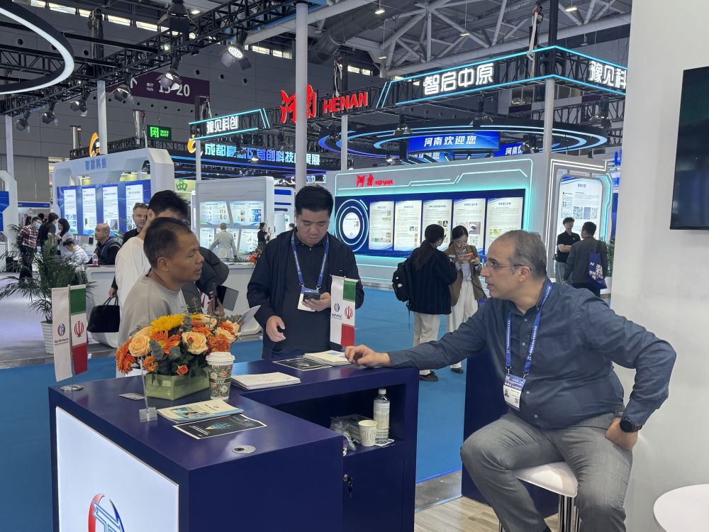 ▲2025年11月14日,在第二十七届中国国际高新技术成果交易会现场,伊朗萨拉姆医疗集团研发主任、医学博士米拉雷扎·塔克亚尔在展位上洽谈。新华社记者 杨深深 摄